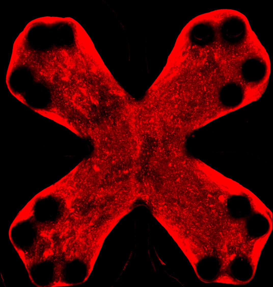The tissue contraction causes the flexible pillars to bend, allowing researchers to calculate the tissue contraction force based on simple mechanical principles.