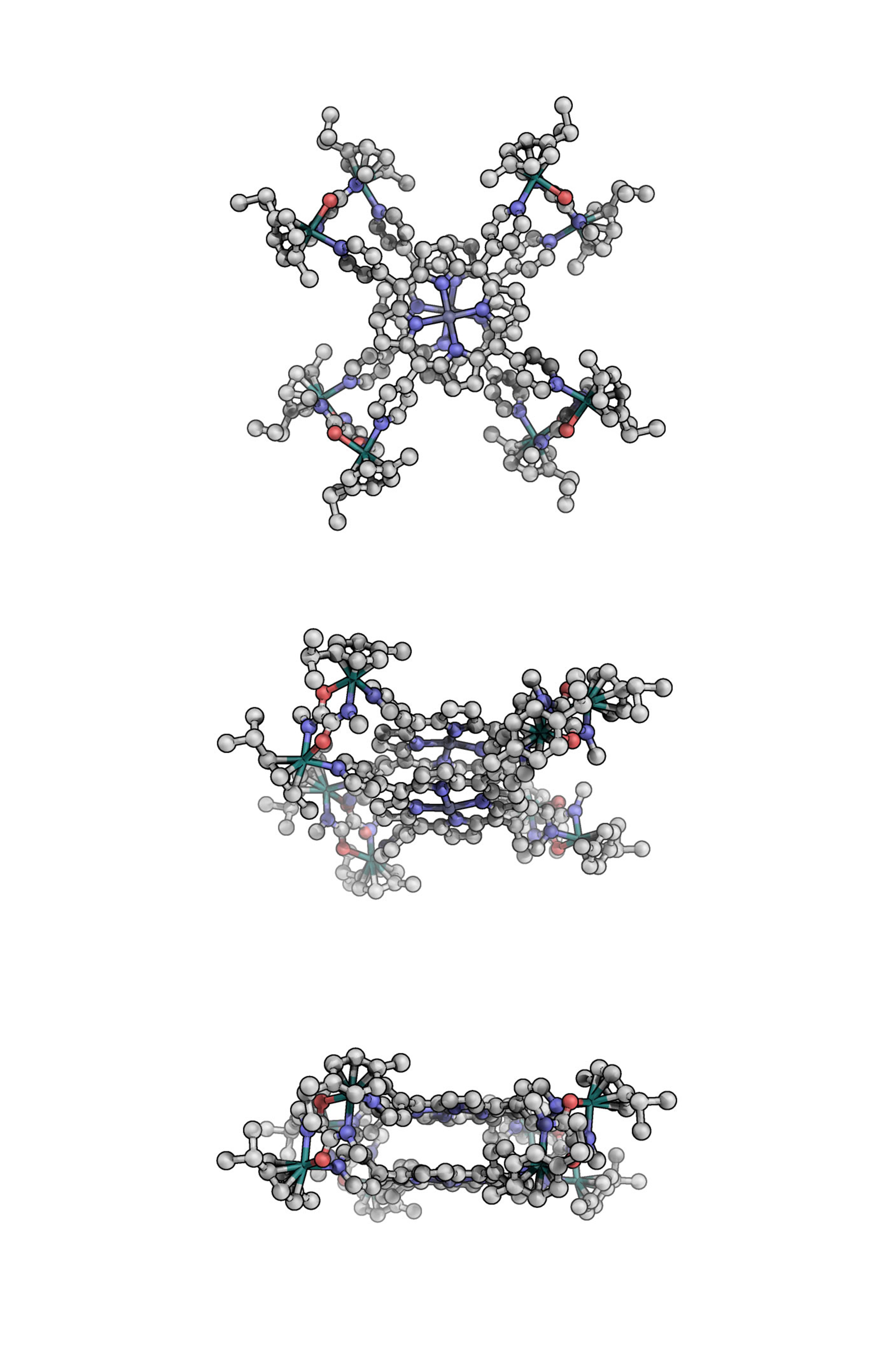 To create the final compounds, Cook’s lab designed porphyrins and clips with chemical properties that ensured they would connect to each other at the right spots. The team then mixed a solution of the porphyrins with the clips and added heat. In two days, the pieces had self-assembled to form the cofacial cobalt porphyrins.