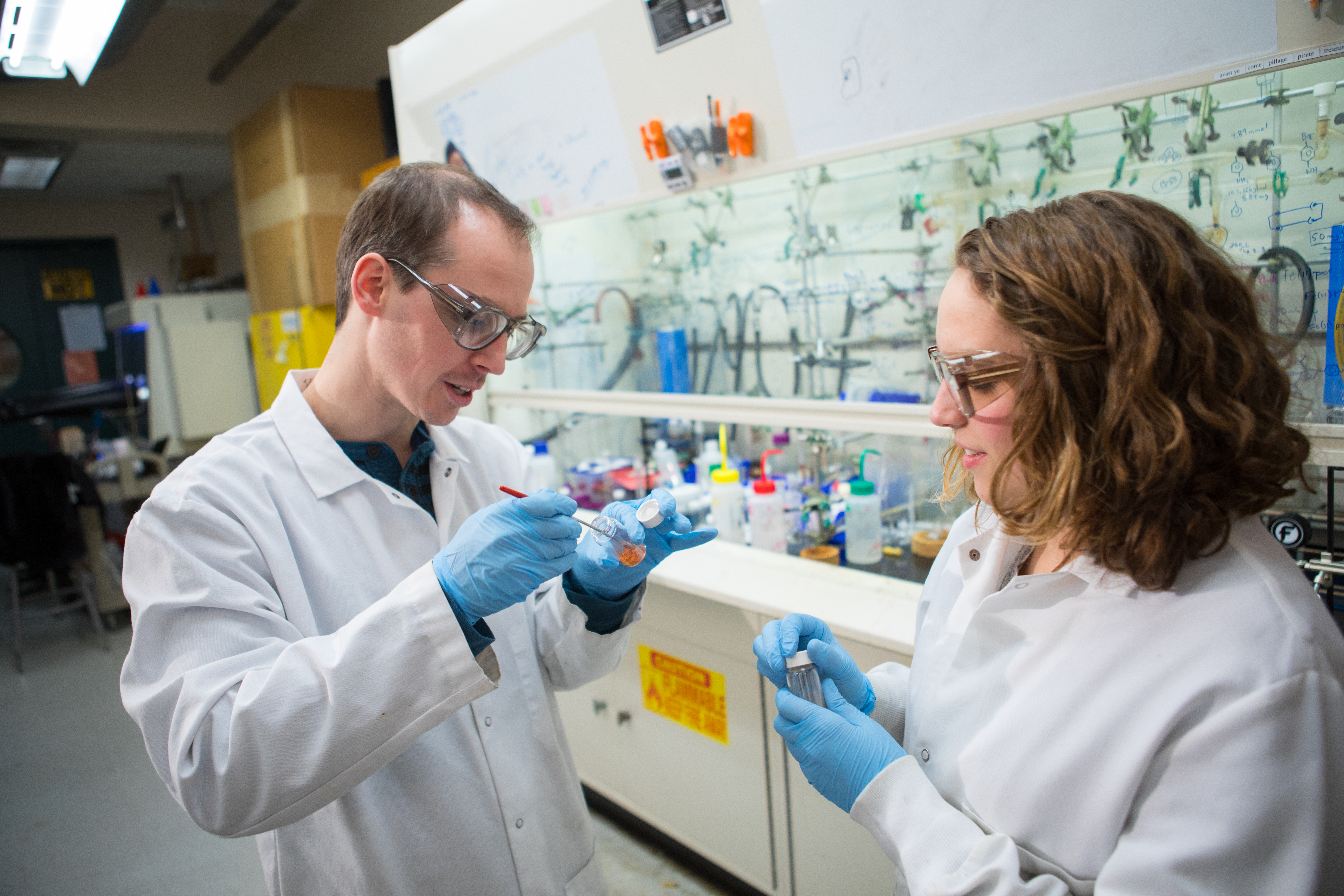 University at Buffalo Assistant Professor Timothy Cook (left) led the study, with Amanda Oldacre, UB PhD graduate in chemistry (right), as first author. Credit: Douglas Levere/University at Buffalo