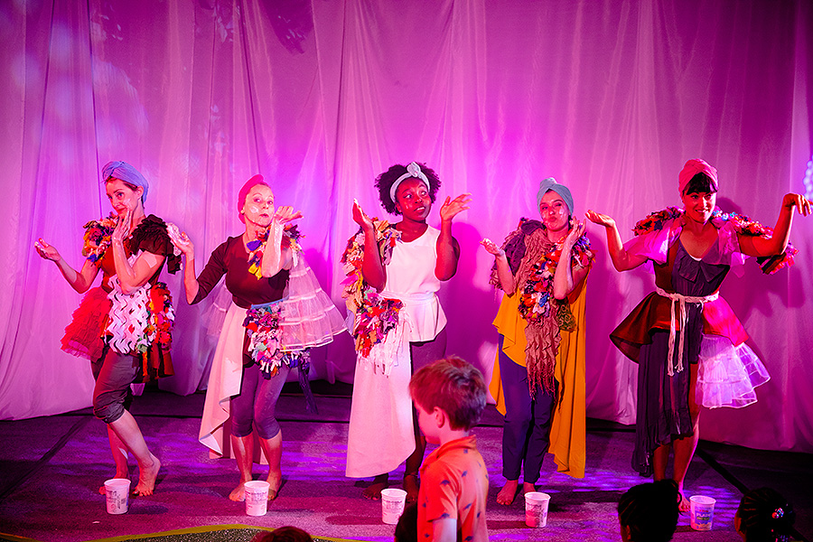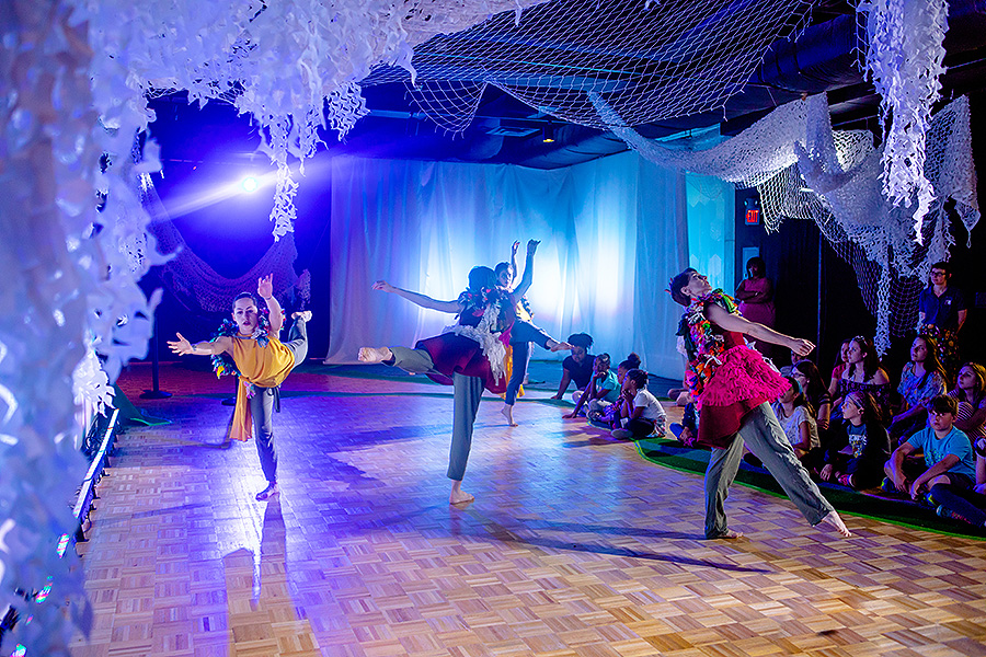 Dancers performing with bacteria “balls” in exploration of homeostasis. Left to right: Stephani Foraker, Alexia Buono, Brooke Laura and Courtney Barrow. Photo: Douglas Levere