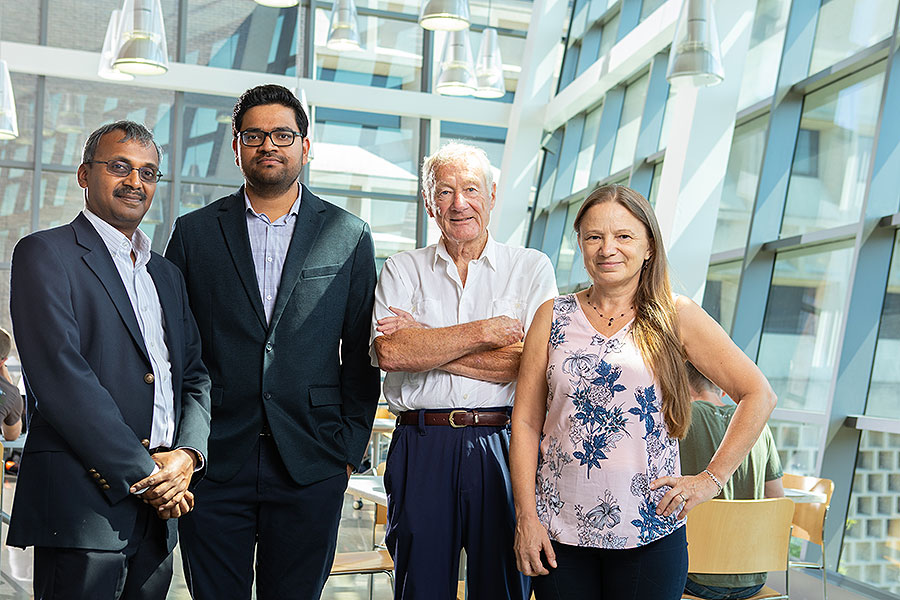 University at Buffalo researchers Abani Patra, Prashant Shekhar, Anton Schenk and Beata Csatho in Davis Hall.