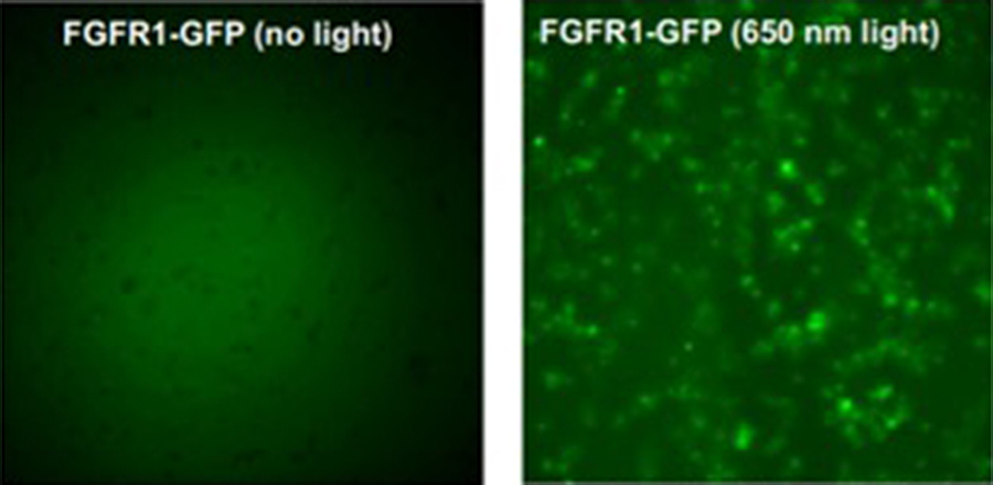 The interaction allowed researchers to activate and deactivate FGFR1 and its associated cellular functions — essentially hacking the gene. The work may eventually enable doctors to manipulate patients’ genomic structure, providing a way to prevent and correct gene abnormalities, says Stachowiak, who also holds an appointment in UB’s Department of Biomedical Engineering, a joint program between the Jacobs School and UB’s engineering school.