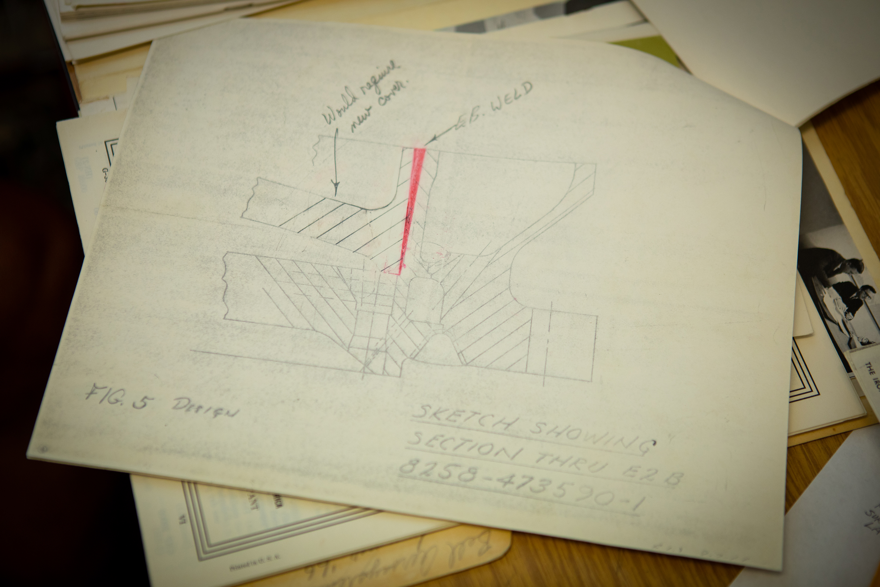 A sketch from Mollendorf’s 1966 summer job at Bell Aerosystems. The drawing deals with welding, a process that he sought to improve as part of his work at Bell. Credit: Douglas Levere / University at Buffalo