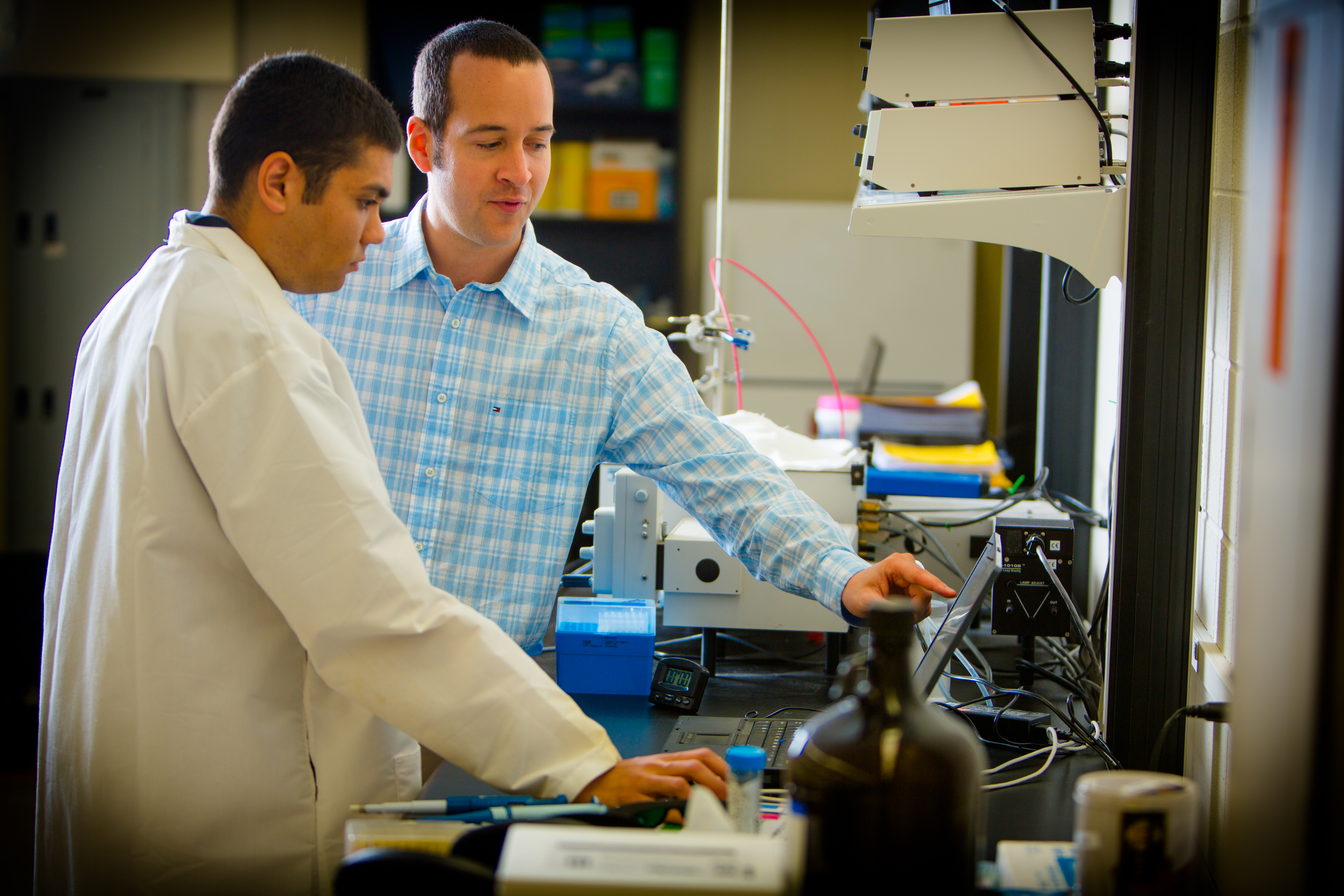 UB researcher Jonathan Lovell (right) and UB PhD graduate Kevin Carter are among the co-founders of Pop Biotechnologies. Credit: Douglas Levere / University at Buffalo
