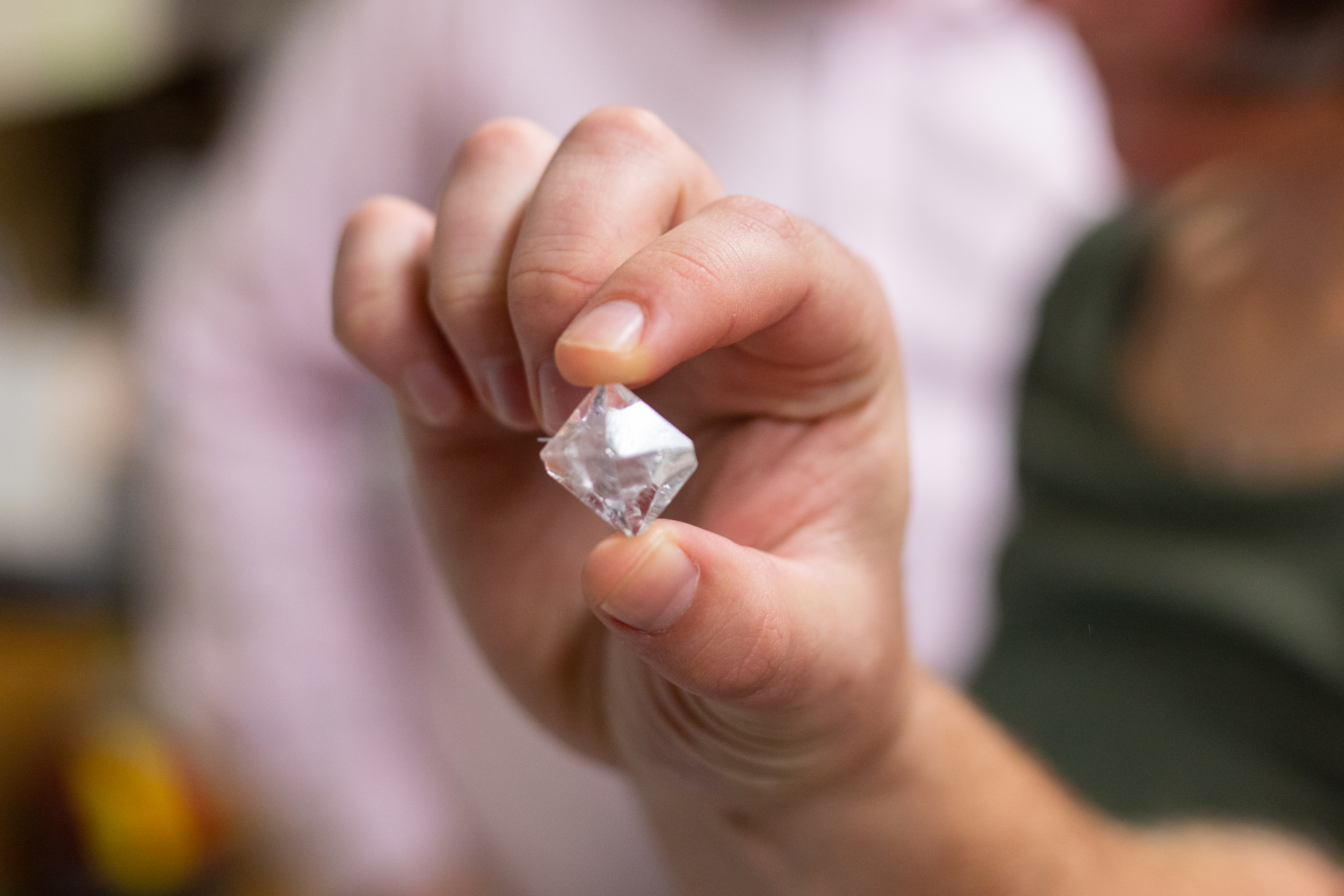 A good alum crystal is colorless, transparent and octahedral. Credit: Douglas Levere/University at Buffalo