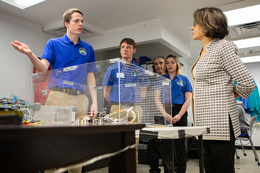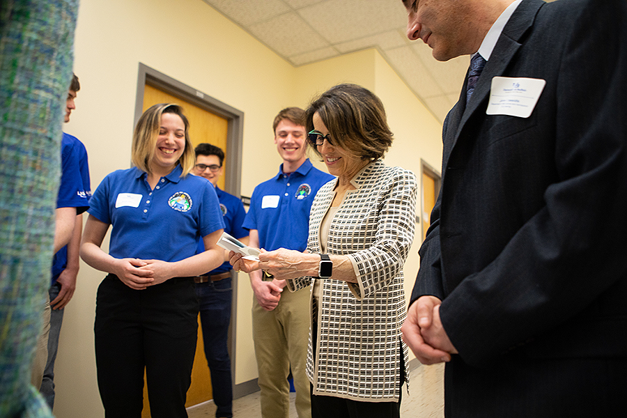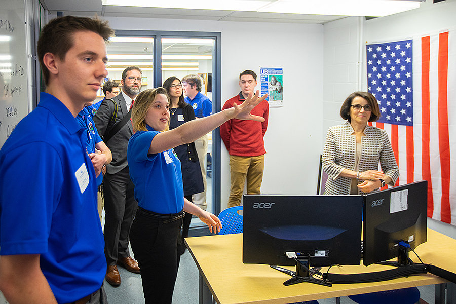 She started the day with a breakfast meeting with UB’s deans, and then received an overview of UB’s Smart Transportation Infrastructure and Systems research, including a demonstration of UB’s autonomous vehicles.