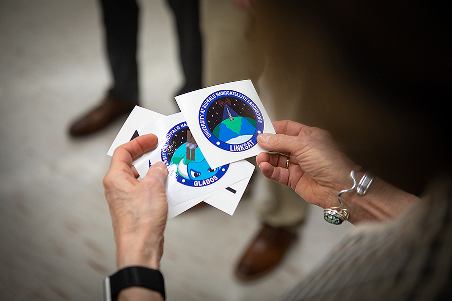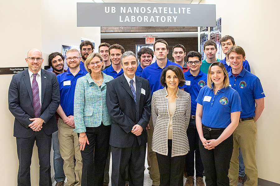 After her Critical Conversation talk, she had lunch with UB’s recent NSF CAREER award recipients, and then toured the Nanosatellite Laboratory.