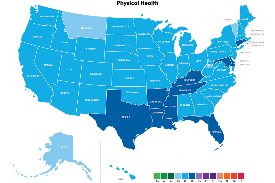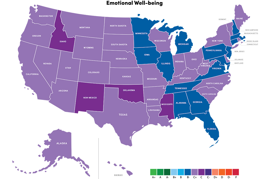 Schools received a B+ for physical health, C for socioemotional wellness and a D for academic proficiency. Grading at the state level varied from a B+ to a D-. No state received an A.